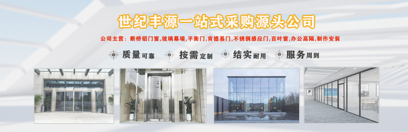 天津世紀豐源門窗有限公司從事斷橋鋁門窗,玻璃幕墻,平衡門,肯德基門,不銹鋼感應門,百葉窗,辦公高隔,制作安裝一站式訂制生產及配套服務等?! 」咀猿闪⒁詠?,始終堅持以人才為本、誠信立業的經營原則,薈萃業界精英,成熟的技術、管理方法及企業經驗與國內企業的具體實際相結合,為企業供給各個方面的解決方案,使企業在激烈的市場競爭中始終堅持競爭力,實現企業快速、穩定地發展。 質量好、服務好、才能信譽好,公司已在諸多領域取得輝煌成績,愿意成為您可信賴的長期合作伙伴?! ∽屛覀償y手同行,共同實現“讓普通老百姓都用得上高端門窗”...